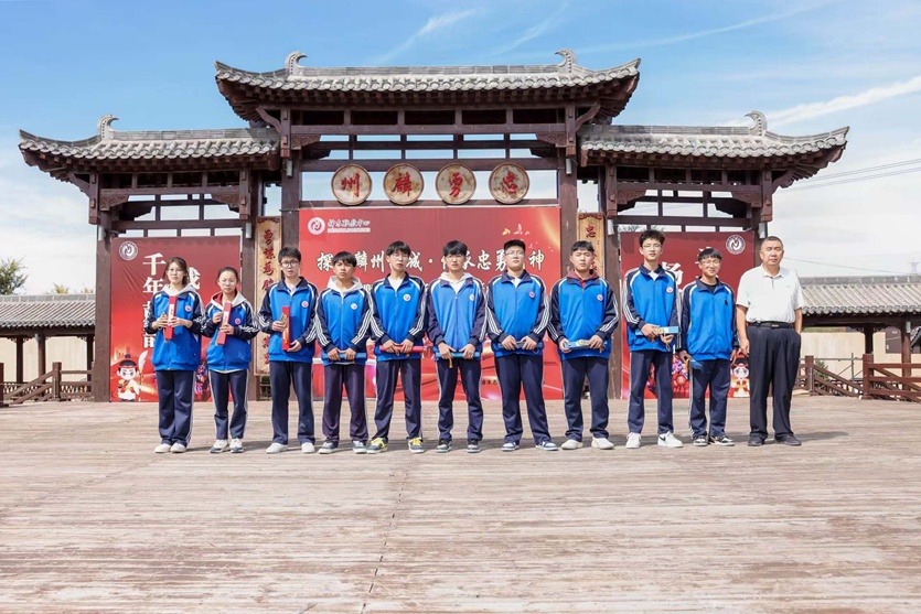 最后,研学团队抵达杨家城东门军事广场。2023级音乐班武博文同学发言,分享了自己在此次研学行程中的收获与感悟,言语中充满了对成长的无限渴望和对未来的美好憧憬。校党总支书记张强为2024级机电5班王予辰、2024级幼师2班郭怡彤、24级综合3班张昊昱等9位杨家鼓优秀队员颁发了荣誉证书并合影留念。