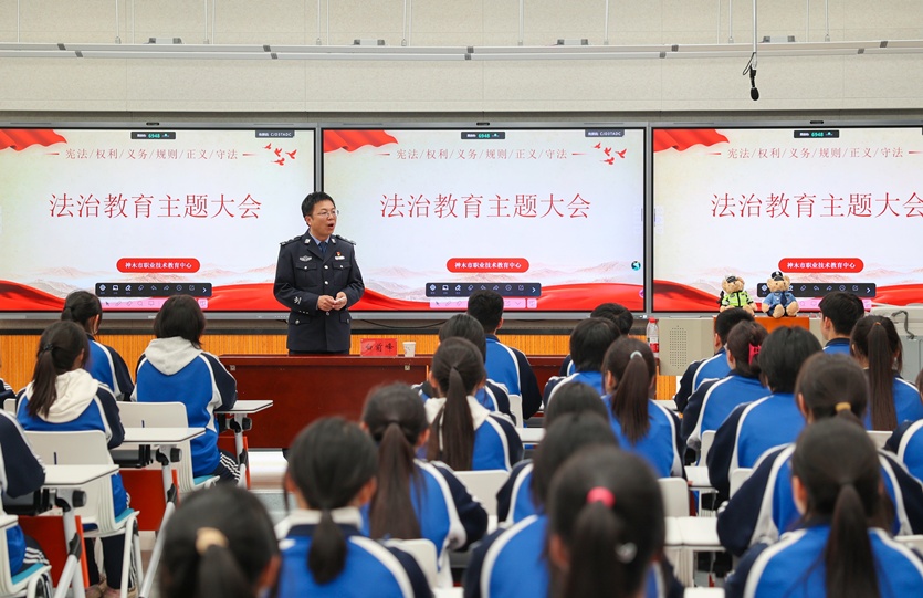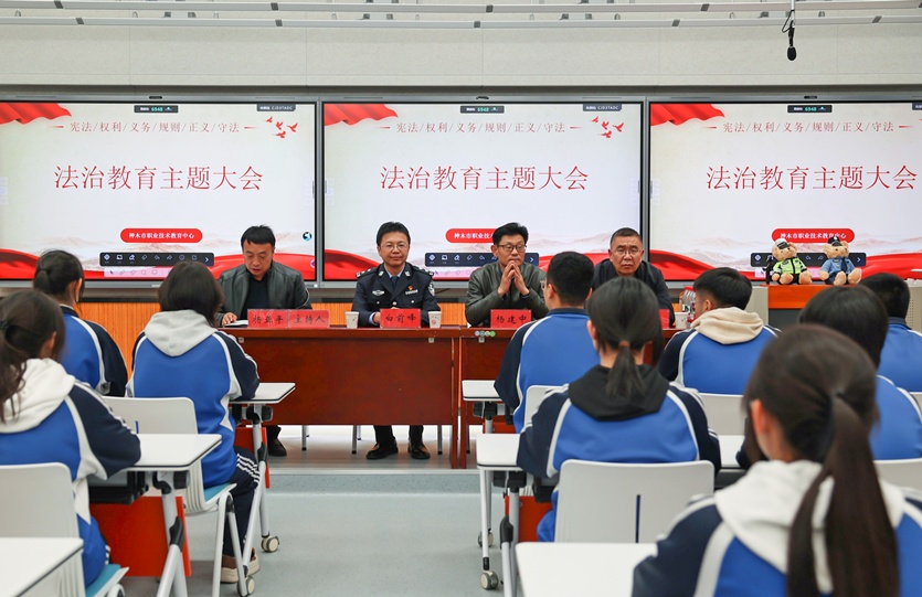 为进一步加强学生法制教育,增强他们的法治观念和自我保护意识,引导学生自觉遵纪守法,学会运用法律武器维护自身合法权益,营造安全、和谐、文明的校园环境,11月3日晚,神木市职业技术教育中心通过现场直播的形式召开法治教育主题大会。分管德育工作副校长杨亚平主持教育大会,滨河新区派出所所长白前峰应邀作法治报告,校党总支书记张强、校长杨建中分别作了讲话,全体2025级学生及班主任在本班教室聆听了讲座。