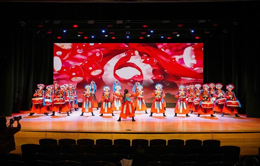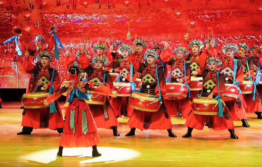 在香港理工大学举行的“小使者看大戏”主题闭幕式演出现场,“忠勇杨家鼓”学生表演队以欢快的鼓点、靓丽的服饰和绚丽的舞姿,充分展示了杨家将纵横沙场、保家卫国的英雄气概,弘扬了新时代神木忠勇爱国的城市精神,也向香港民众展示了陕北文化艺术的独特魅力。